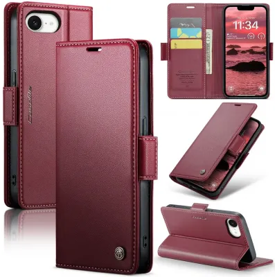 HandyhüllenApple iPhone HüllenApple iPhone 17e HüllenCASEME Litchi Texture Book Wallet Klapphülle für Apple iPhone 17e/16e - Rot