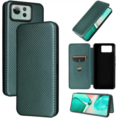 • Phonesta Carbon Fiber Skin Book Wallet Klapphülle für Asus Zenfone 12 Ultra - Dunkelgrün