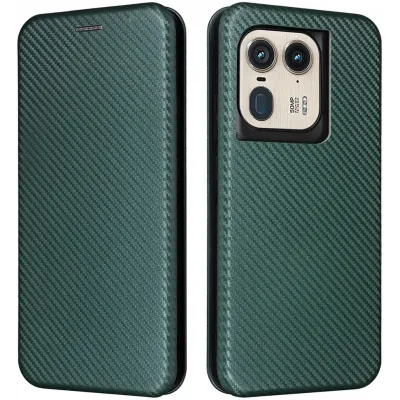 • Phonesta Carbon Fiber Skin Book Wallet Klapphülle für Motorola Edge 50 Ultra - Dunkelgrün