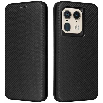 • Phonesta Carbon Fiber Skin Book Wallet Klapphülle für Motorola Edge 50 Ultra - Schwarz