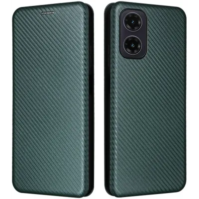 • Phonesta Carbon Fiber Skin Book Wallet Klapphülle für Motorola Moto G35 - Dunkelgrün