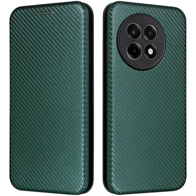 • Phonesta Carbon Fiber Skin Book Wallet Klapphülle für OnePlus 13R - Dunkelgrün