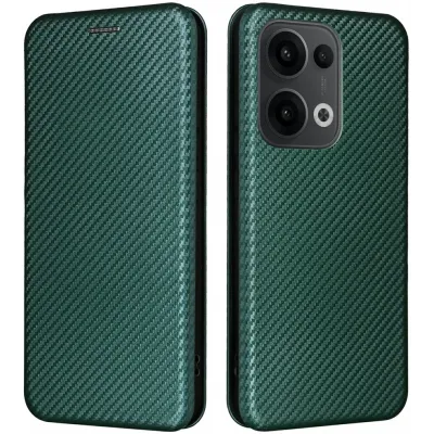 • Phonesta Carbon Fiber Skin Book Wallet Klapphülle für Oppo Reno13 - Dunkelgrün