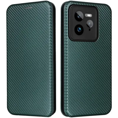 • Phonesta Carbon Fiber Skin Book Wallet Klapphülle für Realme GT 7 Pro - Dunkelgrün