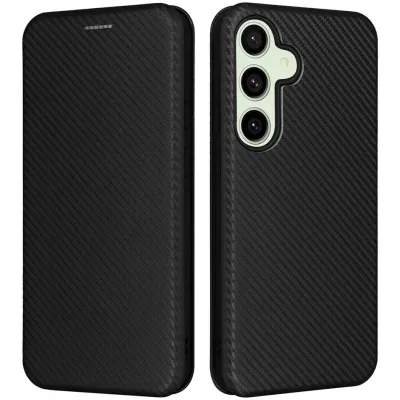 • Phonesta Carbon Fiber Skin Book Wallet Klapphülle für Samsung Galaxy S24 FE - Schwarz