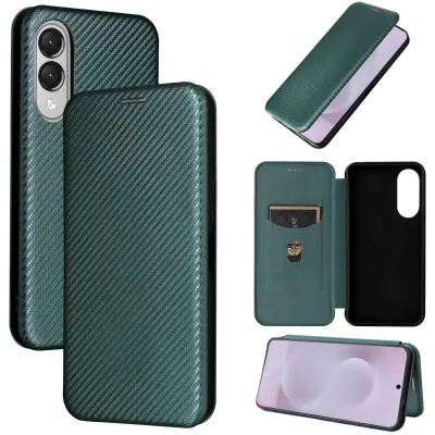 • Phonesta Carbon Fiber Skin Book Wallet Klapphülle für Samsung Galaxy S25 Edge - Dunkelgrün