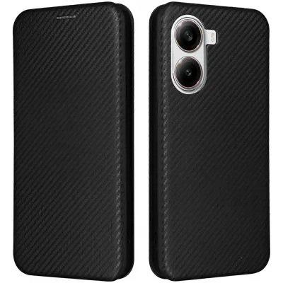 Phonesta Carbon Fiber Skin Book Wallet Klapphülle für Xiaomi Poco X7 Pro - Schwarz