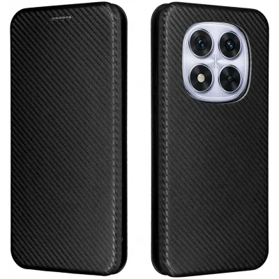 • Phonesta Carbon Fiber Skin Book Wallet Klapphülle für Xiaomi Redmi Note 14 Pro 4G - Schwarz