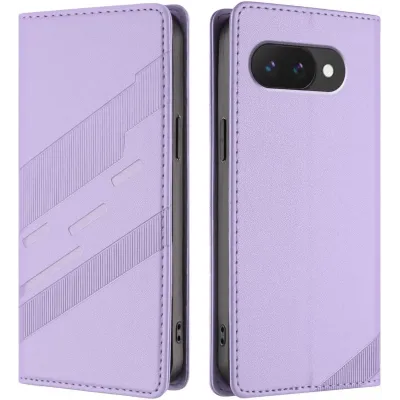 Phonesta Embossed Lines Book Wallet Klapphülle für Google Pixel 9a - Lila