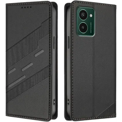 • Phonesta Embossed Lines Book Wallet Klapphülle für HMD Pulse/Pulse Plus/Pulse Pro - Schwarz