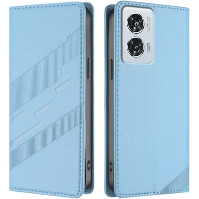 Phonesta Embossed Lines Book Wallet Klapphülle für Motorola Edge 50 Fusion - Hellblau