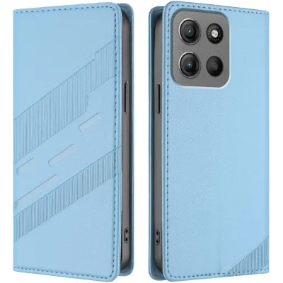• Phonesta Embossed Lines Book Wallet Klapphülle für Motorola Moto G17/G17 Power/G15/G15 Power - Hellblau