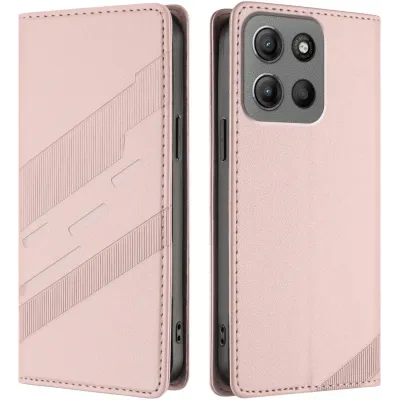 • Phonesta Embossed Lines Book Wallet Klapphülle für Motorola Moto G17/G17 Power/G15/G15 Power - Rosa