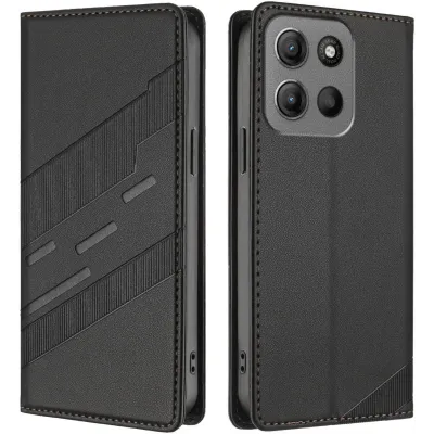 • Phonesta Embossed Lines Book Wallet Klapphülle für Motorola Moto G17/G17 Power/G15/G15 Power - Schwarz