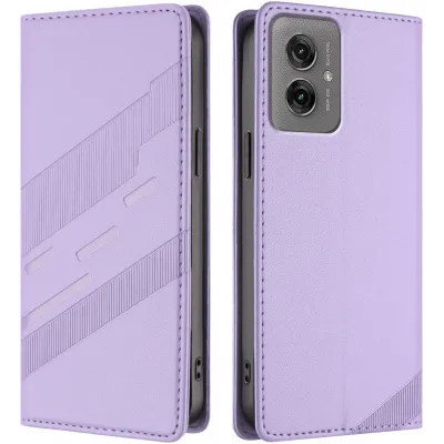 Phonesta Embossed Lines Book Wallet Klapphülle für Motorola Moto G55 - Lila