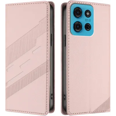 • Phonesta Embossed Lines Book Wallet Klapphülle für Motorola Moto G75 - Rosa