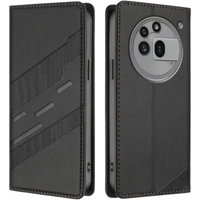 • Phonesta Embossed Lines Book Wallet Klapphülle für Nothing Phone (3a) Pro - Schwarz