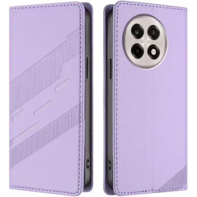 Phonesta Embossed Lines Book Wallet Klapphülle für OnePlus 13R - Lila