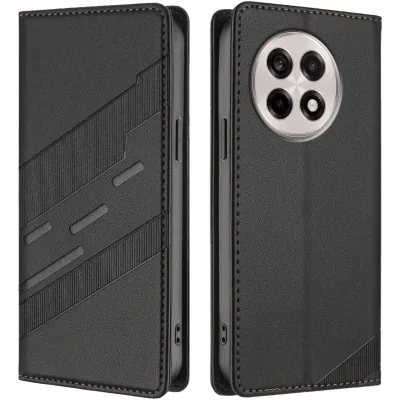 Phonesta Embossed Lines Book Wallet Klapphülle für OnePlus 13R - Schwarz