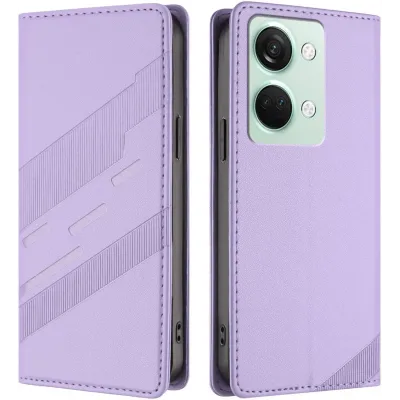 Phonesta Embossed Lines Book Wallet Klapphülle für OnePlus Nord 3 - Lila