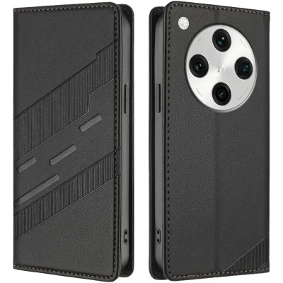 Phonesta Embossed Lines Book Wallet Klapphülle für Oppo Find X8 Pro - Schwarz