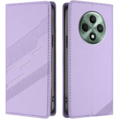 • Phonesta Embossed Lines Book Wallet Klapphülle für Oppo Reno12 F/Reno12 FS - Lila