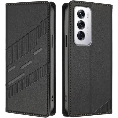 • Phonesta Embossed Lines Book Wallet Klapphülle für Oppo Reno12 - Schwarz