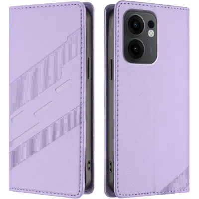 • Phonesta Embossed Lines Book Wallet Klapphülle für Oppo Reno13 F 4G/5G / Reno13 FS 5G - Lila