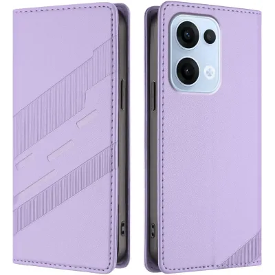 • Phonesta Embossed Lines Book Wallet Klapphülle für Oppo Reno13 - Lila