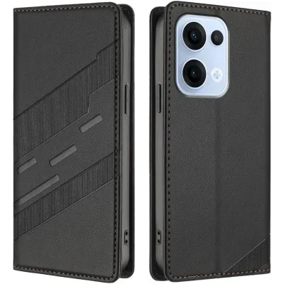 • Phonesta Embossed Lines Book Wallet Klapphülle für Oppo Reno13 - Schwarz