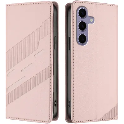 • Phonesta Embossed Lines Book Wallet Klapphülle für Samsung Galaxy S24 FE - Rosa