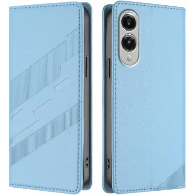 • Phonesta Embossed Lines Book Wallet Klapphülle für Samsung Galaxy S25 Edge - Hellblau