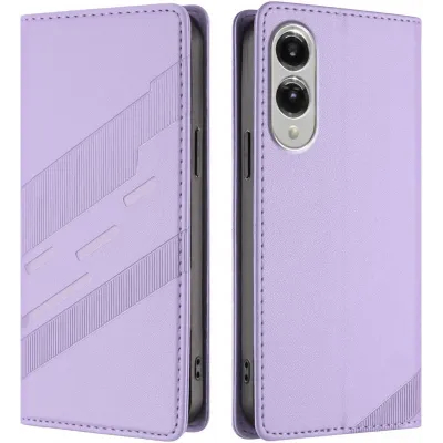 • Phonesta Embossed Lines Book Wallet Klapphülle für Samsung Galaxy S25 Edge - Lila