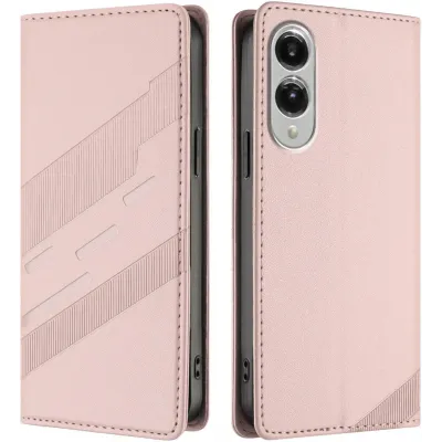 Phonesta Embossed Lines Book Wallet Klapphülle für Samsung Galaxy S25 Edge - Rosa