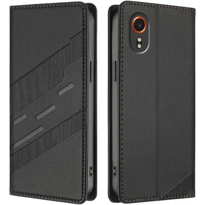 • Phonesta Embossed Lines Book Wallet Klapphülle für Samsung Galaxy Xcover 7 - Schwarz