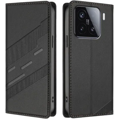 Phonesta Embossed Lines Book Wallet Klapphülle für Xiaomi 15 - Schwarz
