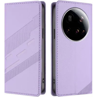 Phonesta Embossed Lines Book Wallet Klapphülle für Xiaomi 15 Ultra - Lila