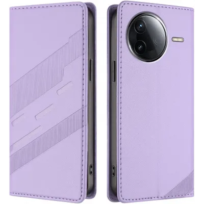 Phonesta Embossed Lines Book Wallet Klapphülle für Xiaomi Poco F7 Pro/F7 Ultra - Lila
