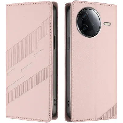 • Phonesta Embossed Lines Book Wallet Klapphülle für Xiaomi Poco F7 Pro/F7 Ultra - Rosa