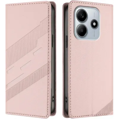 • Phonesta Embossed Lines Book Wallet Klapphülle für Xiaomi Redmi Note 14 5G - Rosa