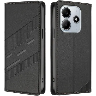 Phonesta Embossed Lines Book Wallet Klapphülle für Xiaomi Redmi Note 14 5G - Schwarz