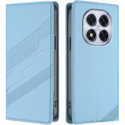 • Phonesta Embossed Lines Book Wallet Klapphülle für Xiaomi Redmi Note 14 Pro 5G/14 Pro Plus / Xiaomi Poco X7 - Hellblau