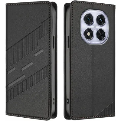 • Phonesta Embossed Lines Book Wallet Klapphülle für Xiaomi Redmi Note 14 Pro 5G/14 Pro Plus / Xiaomi Poco X7 - Schwarz