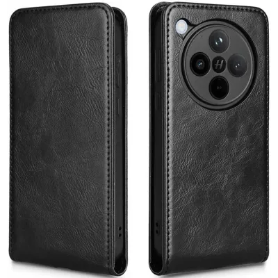 Phonesta Leder Vertical Flip Book Wallet Klapphülle für Oppo Find X8 Pro - Schwarz