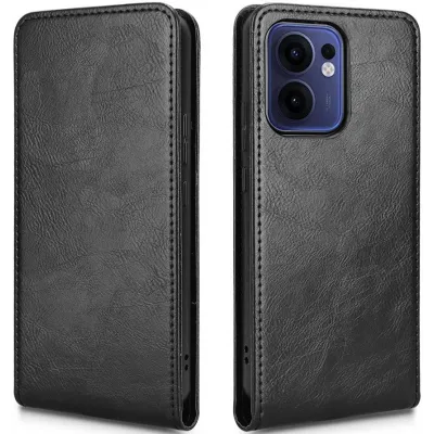 • Phonesta Leder Vertical Flip Book Wallet Klapphülle für Oppo Reno13 F 4G/5G / Reno13 FS 5G - Schwarz