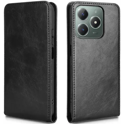 • Phonesta Leder Vertical Flip Book Wallet Klapphülle für Realme C63/C61 / Note 60 - Schwarz