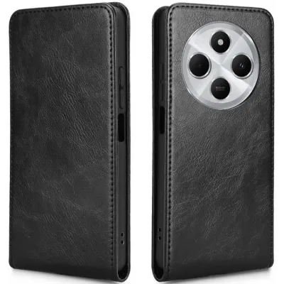 • Phonesta Leder Vertical Flip Book Wallet Klapphülle für Xiaomi Redmi 14C / Xiaomi Poco C75 - Schwarz