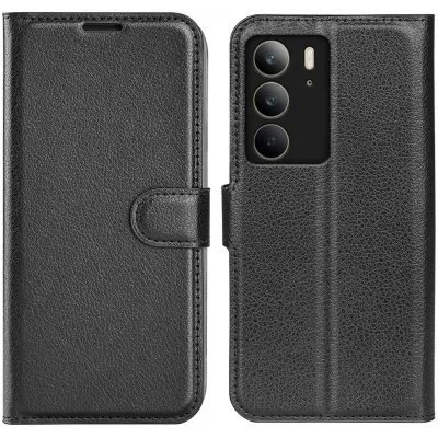 Phonesta Litchi Skin Book Wallet Klapphülle für Realme C75 - Schwarz