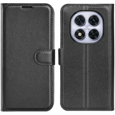 Phonesta Litchi Skin Book Wallet Klapphülle für Xiaomi Redmi Note 14 Pro 5G / Xiaomi Poco X7 - Schwarz