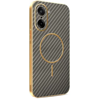 Entdecken Sie die Phonesta Luxury Carbon Fiber Hülle mit MagSafe, speziell entwickelt für Ihr OnePlus Nord CE5. Diese Hülle besteht aus flexiblem TPU und bietet hervorragende Stoßdämpfung sowie eine perfekte Passform. Sie schützt Ihr Smartphone zuverlässig vor Stürzen und Stößen. Die Farbe Braun verleiht Ihrem Gerät ein elegantes Aussehen, während die vergoldete elektroplattierte Oberfläche zusätzliche Haltbarkeit bietet. Diese Hülle ist sowohl stilvoll als auch robust – ideal für den täglichen Gebrauch.